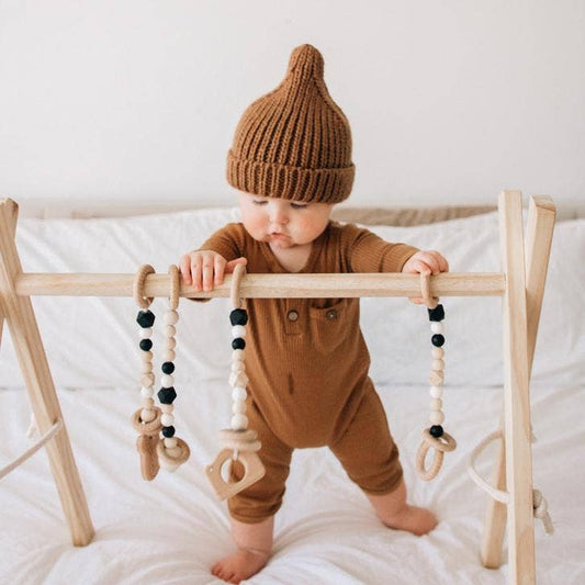 Pebble Brown Buffalo Check Pom Pom Beanie Hat