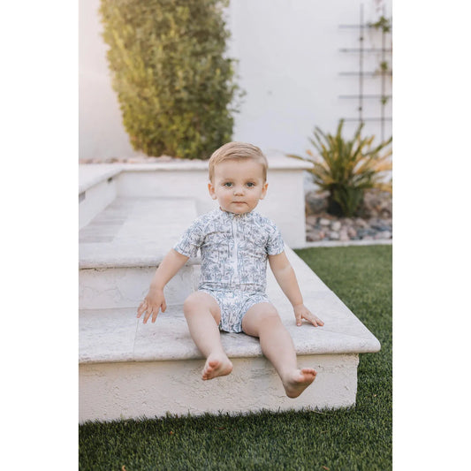 Venetian Floral Long Sleeve Ruffle Zipper One-Piece