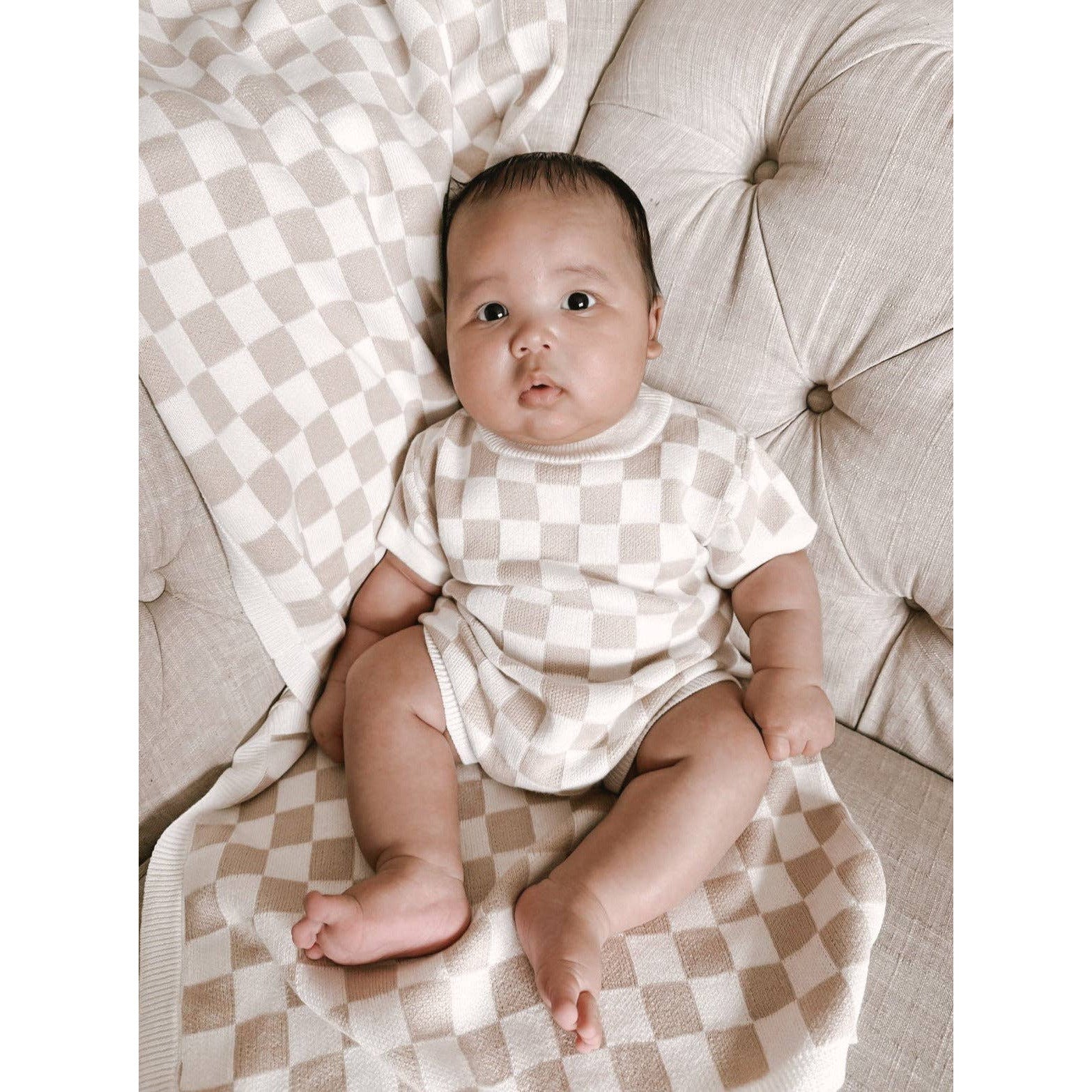 Tan Checkered Romper